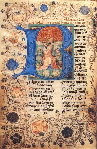 Инициал В с изображением царя Давида. Псалтирь 1438.
