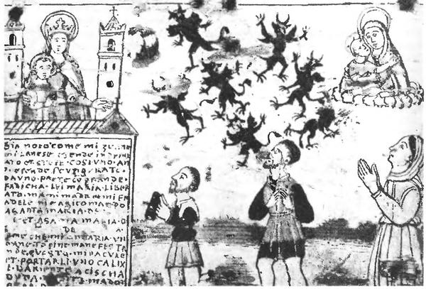 [Закрыть]. Как видим, проповедник XIV века сделал новый шаг в направлении «демонизации» и «инфернализации» народного обычая, зафиксированного этнографами и помимо «примеров». В первом случае погибает от огня один ослушник запрета этого обычая, во втором целая группа грешников низвергается прямо в ад.