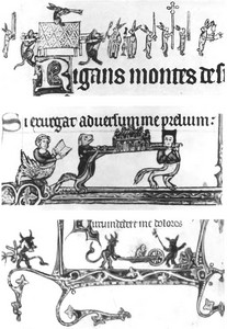 Похороны собаки (пародия на погребальную процессию). Миниатюра из английской псалтири. 14 в.