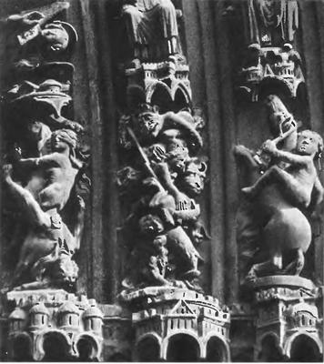 Страшный суд: бесы загоняют осужденных в ад. Собор в Бурже. 13 в.