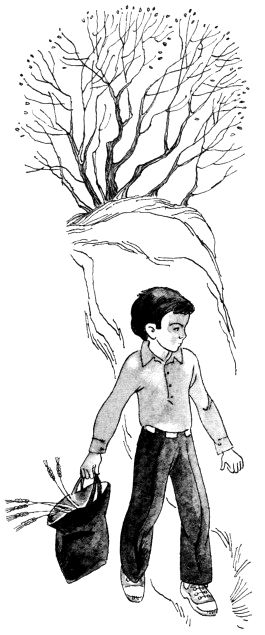 Артёмка сидел красный от стыда. Он не дождался конца обеда и первым убежал в поле. Артёмка шёл, внимательно вглядываясь в стерню: не схоронился ли где колосок. Иногда ему попадались нескошенные стебли пшеницы, туго обвитые вьюном и прибитые к земле. И снова было жарко, и спину ломило, но Артёмка не ушёл с поля, пока туго не набил свой мешочек спелыми душистыми колосками.