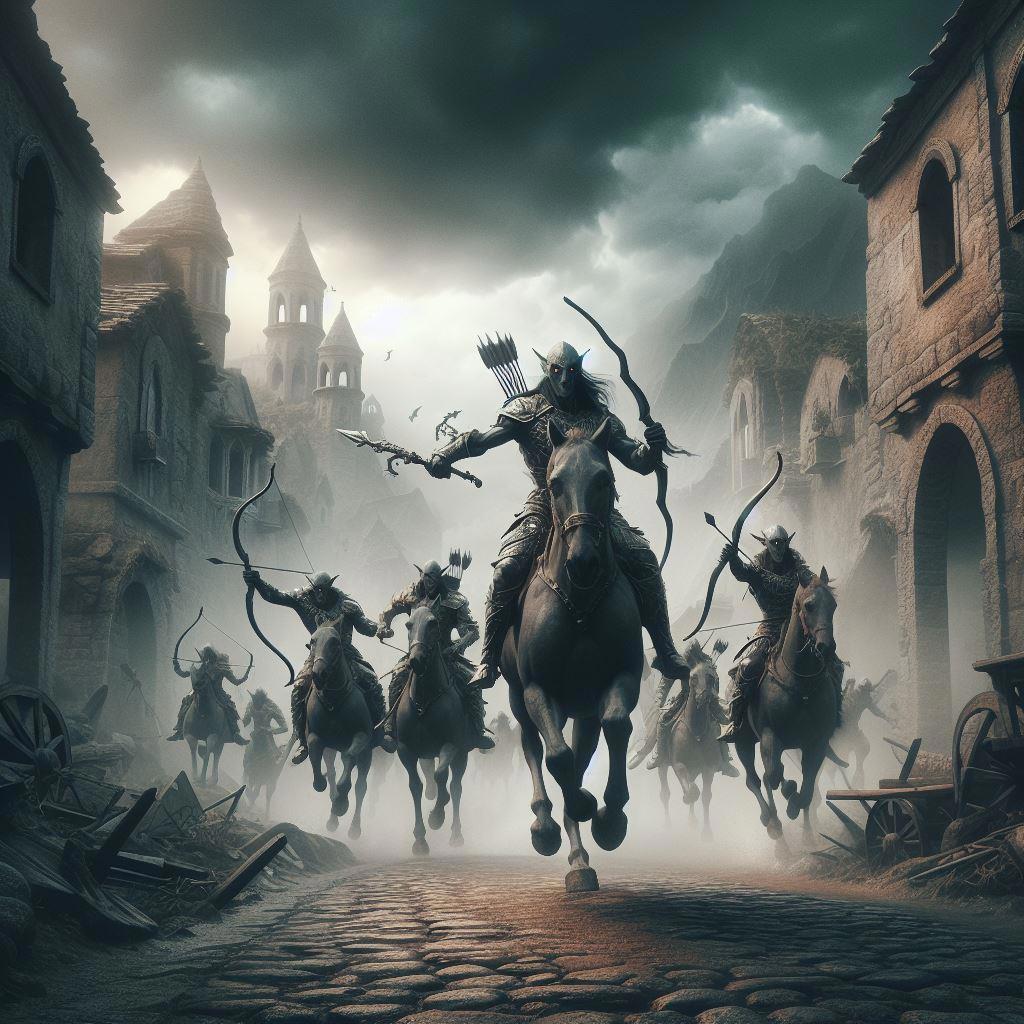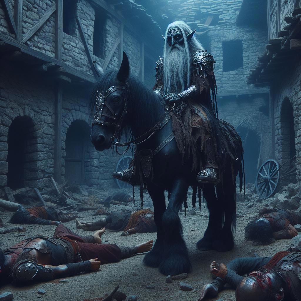 Пока «командиры» нагоняли своё воинство, один из оставшихся в седле наконец перерубил верёвку. Они двинулись дальше. Уже медленным шагом, обходя страдающих лошадей и гоблинов. И, конечно, ножи. Видимо не хотели познать полёт, как их собратья.