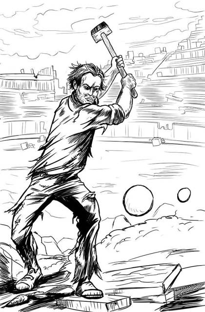 Над развалами земли, смешанной с увядшей зеленью, висели две мерцающие сферы: большая, размером с футбольный мяч, и поменьше, с крупный апельсин. Над первой стоял невысокий, но плечистый юноша. Обливаясь потом, он раз за разом обрушивал кувалду на странный шар. Тот слегка пружинил, но тут же занимал прежнее положение. И никаких следов повреждений на нём не видно – идеально-гладкая поверхность.