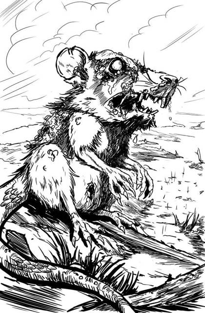 Но габариты – ерунда, главное – как она выглядела. Шерсть местами облезла, обнажив голую кожу, покрытую язвами и нездоровыми тёмно-синими пятнами; хвост непропорционально крупный, покрытый поблёскивающей чешуёй; голова будто запущенной гангреной поражена – гниющее мясо разваливается, обнажая кости, на месте левого глаза пузырящаяся багровая масса, одним своим видом возбуждающая рвотный рефлекс.
