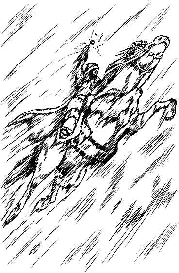 Следом мчался маг, и он уже начал заниматься чем-то нехорошим. Сидел в седле неестественно, будто статуя, лицо запрокинуто, взгляд застывший, рука с жезлом вскинута выше головы. И даже пробивающееся через редкую облачность солнце не может скрыть искры, что всё чаще и чаще пробегают по богато разукрашенному навершию волшебного оружия.