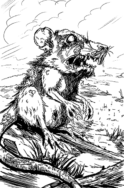 Но габариты – ерунда, главное – как она выглядела. Шерсть местами облезла, обнажив голую кожу, покрытую язвами и нездоровыми тёмно-синими пятнами; хвост непропорционально крупный, покрытый поблёскивающей чешуёй; голова будто запущенной гангреной поражена – гниющее мясо разваливается, обнажая кости, на месте левого глаза пузырящаяся багровая масса, одним своим видом возбуждающая рвотный рефлекс.