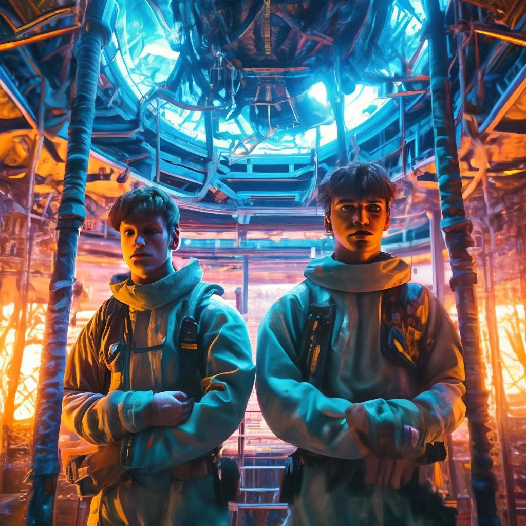 Генри и Абрахам ускорили шаг, но вдруг на их пути к воротам к кораблю возникли автоматроны. Им преградили путь десять механических машин.