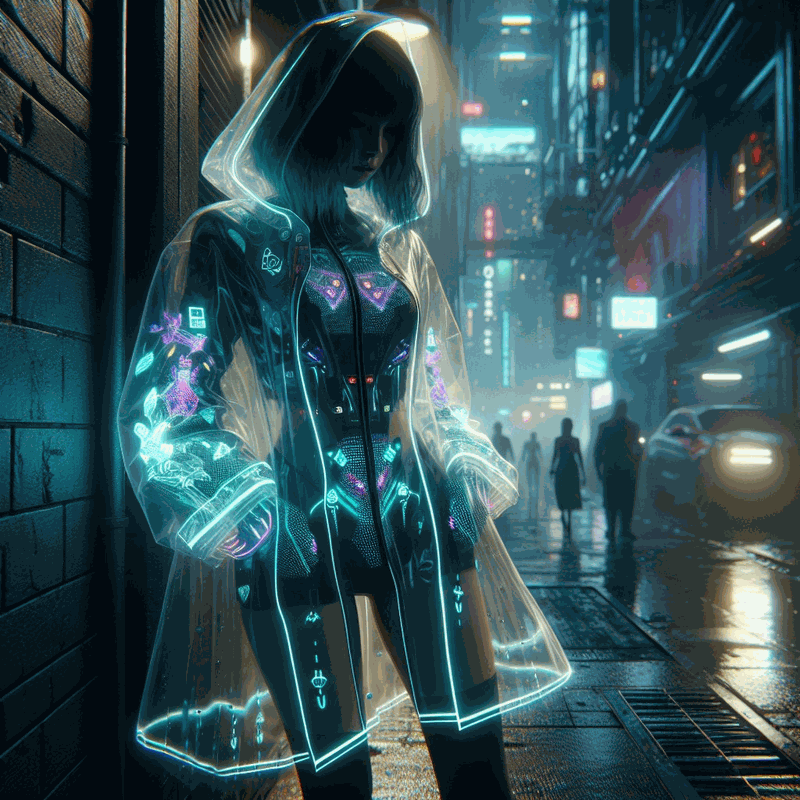 Волков обернулся. В дверях стояла прелестная девушка. Худенькая, в прозрачном пластиковом плаще, под которым просвечивало изящное тело, покрытое голографическими татуировками. Часть из них постоянно мерцала, словно при сбое: маленькое сердечко над левой грудью, тусклые цифры кредитного счёта на правой кисти, рекламный слоган чуть ниже упругого живота – «Хочешь забыться? Подходи».