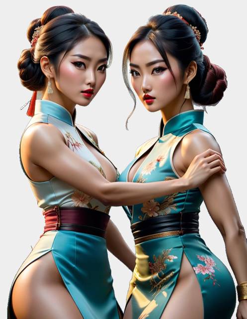Мы уселись рядом, отдыхая после спарринга и практически одновременно уставились на вышедших на ринг девчонок. Одетые в классические белые и красные платья ципао, с длинными разрезами на стройных бёдрах одноклассницы ритуально поклонились и аккуратно ступая босыми ногами, закружили вокруг, выгадывая момент для атаки.