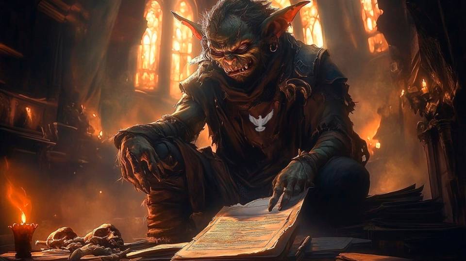 Обычно у гоблинов борода не растёт вообще, но этот видимо имел примесь человеческой или гномьей крови.