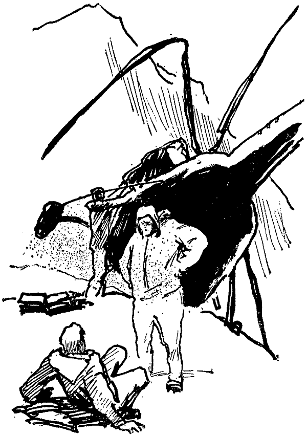 Пилот стиснул зубы и послал машину вперед. Сергею показалось, что они падают. Винт не мог удержать машину без помощи ветра, отрезанного теперь от них кромкой плато. Все ближе поверхность земли. Машина в немыслимом прыжке перепрыгнула через гряду камней, теряя управление, раскачиваясь, понеслась дальше. Сразу же их тряхнуло, что-то они зацепили, потому что справа Сергей увидел высоко взметнувшийся фонтан снега. Тут же последовал второй удар, сильнее первого.