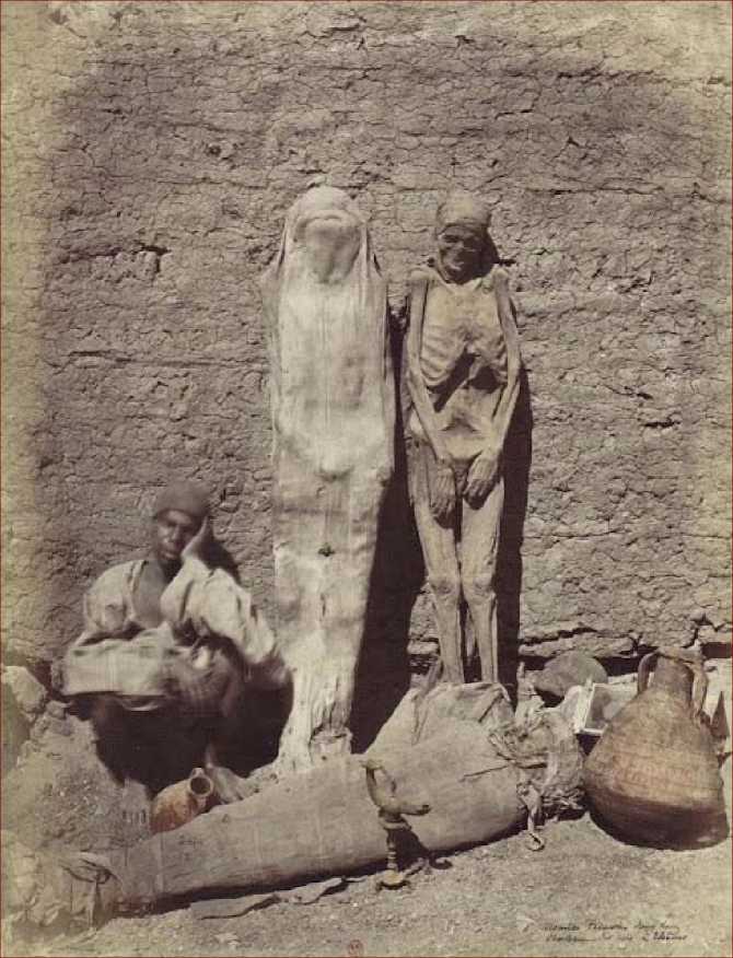 На протяжении XIX в. некоторые методы пионеров египтологии были чрезвычайно разрушительны, едва ли не преступны; однако они значительно обогатили наши научные познания. Среди многочисленных египетских древностей, отправляемых в музеи, были и мумии. В 1840-х годах пароходы существенно облегчили поездки в Египет. Богатые туристы привозили домой мумии в качестве сувениров, в моду вошли публичные и частные демонстрации и званые вечера с «распеленанием» мумий. Одно из дошедших до нас приглашений гласит: «Мумия из Фив будет разбинтована в доме лорда Лондесборо в половине третьего».
