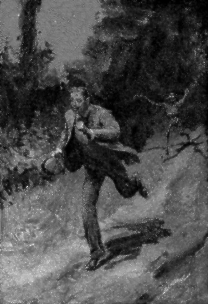 Тяжелая калитка захлопнулась за ним, но он услышал, как она тотчас распахнулась перед его преследователем. Обезумев, он мчался сквозь тьму, слыша за собой дробный топот, и, оглянувшись, увидел, что это жуткое видение настигает его огромными прыжками, сверкая глазами, вытянув вперед костлявую руку. Слава богу, дверь была распахнута настежь. Смит увидел узкую полоску света горевшей в передней лампы. Но топот раздавался уже совсем рядом, и у самого уха Смит услышал хриплое клокотание. Он с воплем влетел в дверь, захлопнул ее, запер за собой и, теряя сознание, упал на стул.