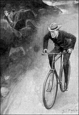 Только мы успели спрятаться за валун, как этот человек пронесся мимо. В облаке пыли, поднятой велосипедом, передо мной мелькнуло бледное, взволнованное лицо – лицо, в каждой черточке которого сквозил ужас: открытый рот, остановившийся взгляд дико вытаращенных глаз. Это была какая-то нелепая карикатура на щеголеватого, подтянутого Джеймса Уайлдера – нашего вчерашнего знакомца.
