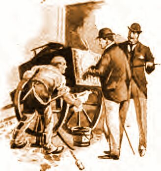 Итак, я подъехал к дверям конюшни на кэбе, мы втолкнули в него нашего пленника, и Хьюитт запер дверь сарая своим импровизированным ключом. Затем мы отправились в ближайший полицейский участок на Тоттенхэм-корт-роуд, заехав прямо во двор.