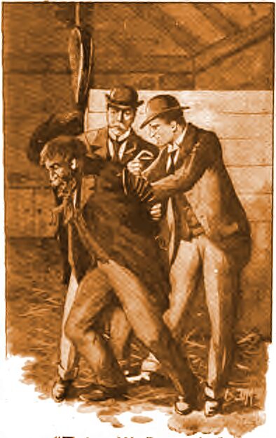 Пока я натягивал ремни, Мартин держал заключенного особым захватом, когда одновременно удерживается и шея, и запястье. Это не позволяло незнакомцу двигаться, кроме как с риском сломать руку. Он, вероятно, никогда не обращал внимания на свой внешний вид. Его волосы были засалены и спутаны, косматая борода топорщилась. Он был невысокого роста, крепкого телосложения. Его лицо покраснело от борьбы, и было измазано грязью со двора конюшни, из носа текла кровь, а на лбу виднелась шишка. Выглядел он отталкивающе. Мы связали ему локти сзади и спросили, что у него в карманах, но он нас проигнорировал. Хьюитт бесцеремонно вывернул их содержимое. Каким бы беспомощным ни был незнакомец, но он изо всех сил пытался сопротивляться, хотя и безрезультатно. В его карманах нам удалось обнаружить какие-то бумаги, табак и связку ключей. Хьюитт поспешно взглянул на бумаги, внезапно отбросил их, схватил пленника за плечо и оттащил от частично обгоревшего стога сена в углу.