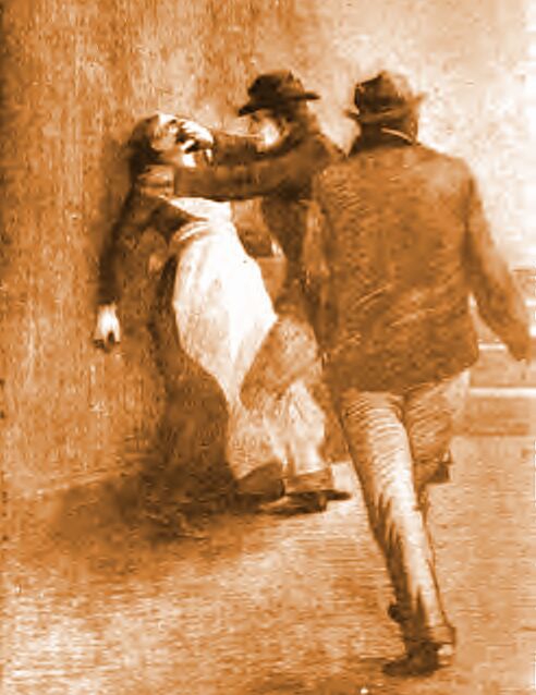 Я следовал за ним по пятам и в темноте смог различить, что Хьюитт прижал женщину к стене и зажал ей рот рукой. В этот же момент внезапно показалась вереница мужчин, поднимающихся по ступеням вслед за мной. Это была полиция.