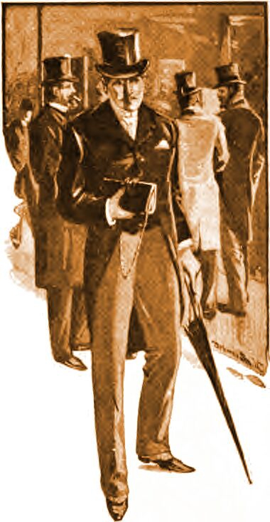 Хьюитт позвонил и послал Керретта за экземпляром каждой утренней газеты вчерашнего дня. Затем он вынул из большого шкафа приличный, но поношенный и довольно грубоватый цилиндр и немного потрепанное пальто с лоснящимся воротником. Он переоделся, затем заменил свой чистый белый галстук на старый и пожелтевший от времени. Натянул на ноги заляпанные грязью штаны. Сделав это, он достал очень большой и толстый бумажник и пристегнул его к себе широкой резинкой.