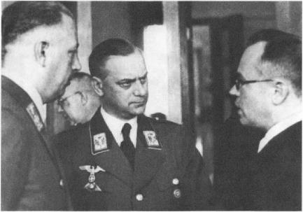 Генеральный комиссар Литвы Теодор Адриан фон Рентайн, рейхсминистр по делам оккупированных восточных территорий Альфред Розенберг и представитель литовского самоуправления – первый генерал и главный советник по внутренним делам Петрас Кубилюнас. Каунас, 1942.