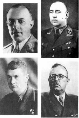 Окружной комиссар Каунаса Арнольд Ленцен. Окружной комиссар города Вильнюс Ханс Хингст. Окружной комиссар Вильнюса Хорст Вульф. РейхскомиссарОстланда Хинрих Лозе.
