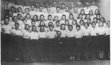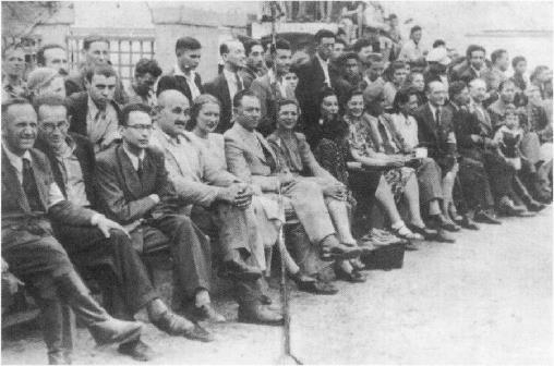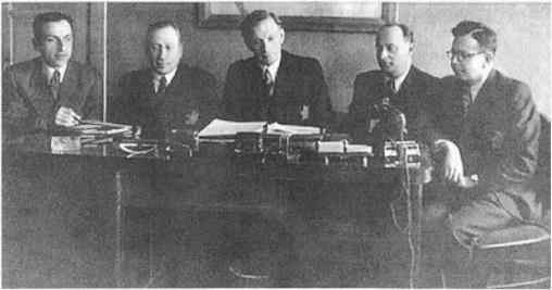Руководство Вильнюсского гетто. В первом ряду, шестой слева, – глава Вильнюсского гетто Якоб Генс. Vilnius, 1943. Фото из книги Л. Ран «Литовский Иерусалим», том. II, Нью-Йорк, 1974