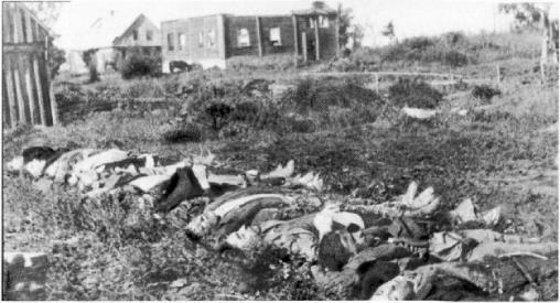 Жертвы военной карательной операции НКВД на площади города Камаджаи. 25 июня 1945 года.