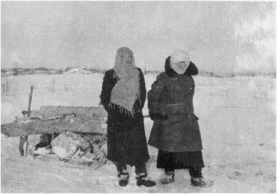 Депортированные в 1941 году сестры Бронислава Жалдокене и Сесилия Малдутене несут дрова. Коломинские Гривы, Томская область, около 1944 года.