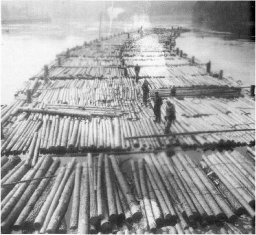 Плоты, дрейфующие по реке Енисей. Кривляк, Красноярский край, 1953 год.