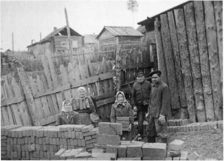 Рабочие кирпичного завода загружают кирпичи. Болтурино, Кежемский район, Красноярский край, около 1955 года.