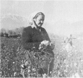 Marijona Poškienė picking cotton. Куйбышевский район, Таджикская ССР, 1956 год.