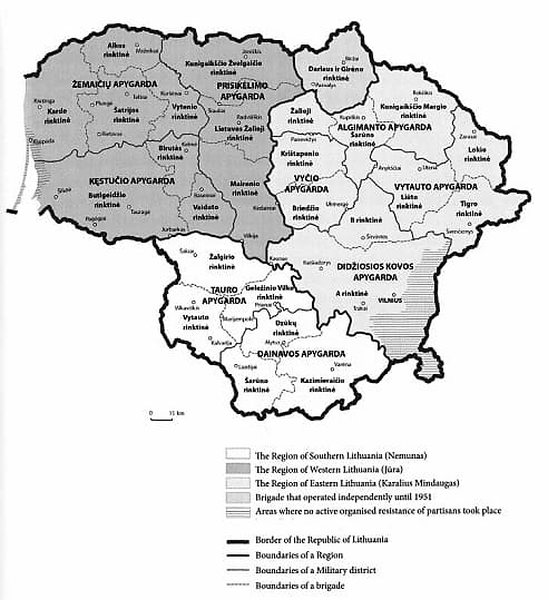 Акции сопротивления Советской оккупации начались с самых первых шагов Красной Армии в Литве, то есть летом 1944 года, и продолжались до весны 1953 года, когда Советы ликвидировали последние штабы партизан в областях и уездах, а также арестовали председателя Президиума Совета ЛЛКС Йонаса Жемайтиса (псевдоним Витаутас) (в мае). В течение девяти лет в Литве происходили действия, которые некоторые называют литовской войной, хотя не было единого политического руководства, представляющего оккупированную страну, и единого военного руководства, подчиненного ей. Однако это сопротивление имело ярко выраженный национальный характер – как в подпольной партизанской прессе, так и в военно-политических документах подчеркивается, что это «[...] великолепная борьба за освобождение нации».