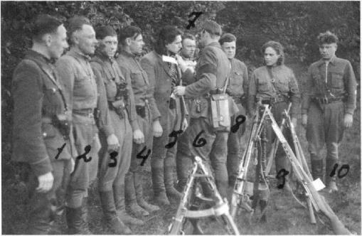 Партизаны. Посередине (четвертый слева) командир бригады Локис Казимерас Каладинскас, псевдоним Эршкетис.