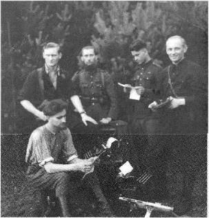 Standing from the left: Lionginas Baliukevičius (alias Dzūkas), Viktoras Kazlauskas (alias Paukštis), Jonas Jakubavičius (alias Rugys), Adolfas Ramanauskas (alias Vanagas). Впереди сидит Вацловас Воверис (псевдоним Жайбас).