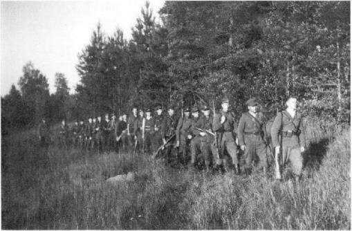 Формирование партизан. Впереди – командующий военным округом Витовта Бронюс Калитис (псевдоним Шяубас).