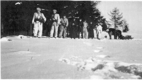 Партизаны бригады «Лютас» на марше. Третий слева – Бронюс Моркунас (псевдоним Дьемедис), пятый – Антанас Моркунас (псевдоним Янутис).