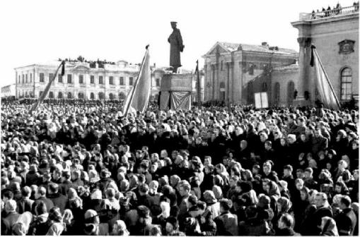 Траур в день смерти Сталина. Площадь Вильнюсского железнодорожного вокзала, 5 марта 1953 года.