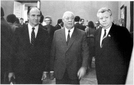 Альбертас Лауринчюкас, редактор газеты, Петрас Гришкявичюс, первый секретарь Центрального комитета Коммунистической партии Литвы; и Витаутас Сакалаускас, председатель Совета министров Литовской ССР.