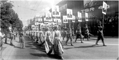 Шествие участников песенного фестиваля. Vilnius, 1980.