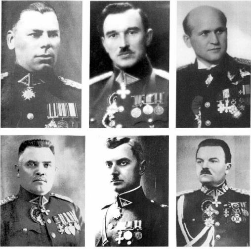 Репрессированные генералы литовской армии Винцас Жилис, Казис Скучас, Антанас Густайтис, Юлюс Чапликас, Йонас Юодишюс и Зенонас Герулайтис.