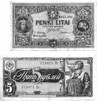 Во время изъятия литовской валюты из обращения литы обменивались по курсу 1 лит = 90 копеек, хотя реальная стоимость литов была в 3-4 раза выше. Установленный низкий обменный курс был выгоден офицерам Красной Армии и советским чиновникам, которые приезжали в Литву на работу и которые вместе со своими семьями покупали товары по дешевке в Литве и вывозили их обратно в Советский Союз. В ноябре 1940 года в Литве было обращено 223 миллиона литов. Вместо 700-800 миллионов рублей по реальному курсу Литва получила только 200 миллионов рублей. Это означало, что Литва была ограблена и из-за неэквивалентного обменного курса между литами и рублем потеряла 0,5 миллиарда рублей.
