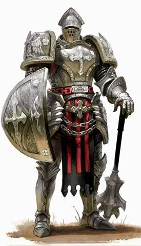 В руках он держал широкий щит с выбитым крестом, как на груди, и цельнометаллическая штуковина метра полтора в длину, с массивным навершием из шести граней. Что-то среднее между булавой и шестоперой.