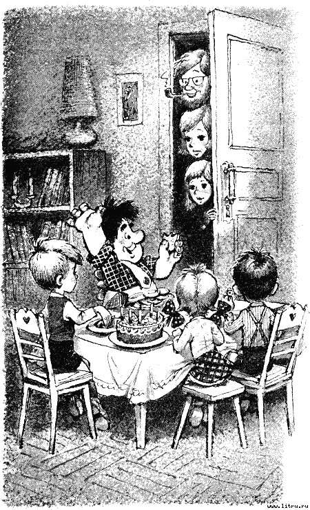 И все они – мама, папа, Боссе и Бетан – отправились поглядеть, как Малыш празднует свой день рождения.