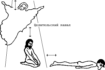 Конечно, подчинение ангелу-целителю в целом не означает, что массажист должен ограничиваться, скажем, симптоматическим целительством – хороший целительский канал может подсказать, где лежат истинные корни дисбаланса, даже если они абсолютно закрыты для ангела-целителя; автор утверждает лишь необходимость постоянного диалога между ангелом-целителем клиента и целительским каналом массажиста и в идеале достижение такого уровня взаимопонимания между ними, что становится возможной их совместная работа по балансировке организма клиента (рис. 1.3).