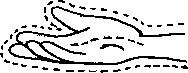 Хилая спина во многих отношениях противоположна могучей, и в первую очередь ее отличает недостаточная эфирная энергетика: ее эфирное тело на границе очень слабо и еле-еле выступает за пределы физического, что часто сопровождается бледным, анемичным видом кожи и вызывает у постороннего, но доброго человека чувство острой жалости: хозяина хилой спины хочется накормить, приласкать, одеть потеплее, дать возможность отдохнуть и т. д. Хилая спина нуждается в уплотнении границы эфирного тела, что и достигается приемом закрывающего поглаживания. Оно производится расслабленной ладонью с (неплотно) сомкнутыми пальцами, включая и большой; ладонь движется в направлении от кончиков пальцев руки к ее запястью (рис. 2.8).