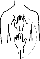 Простое открывающее поглаживание (рис. 2.6) заключается в попеременном движении ладони в направлении отведенного большого пальца и обратно, зигзагообразное открывающее поглаживание (рис. 2.7) исполняется так же, но с небольшим дополнительным движением руки против направления сомкнутых пальцев.
