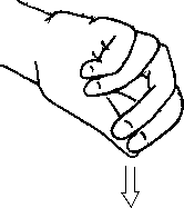 Бумеранг (рис. 2.12): прямой палец с разогнутым до предела дальним суставом, расположенный так, что его подушечка (ладонная поверхность ногтевой фаланги) лежит на поверхности тел.