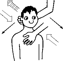б) Клиент максимально выдвигает плечи вперед, то есть ссутуливается, но головы не опускает (рис. 3.2 б). Далее упражнение выполняется, как в а), но плечи постоянно выдвинуты вперед.