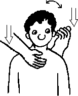 б) Клиент перемещает плечевые суставы вперед, приближая их к своим ушам, и, сохраняя это положение, поднимает их вверх и опускает вниз, как в а); действия массажиста такие же (рис. 3.12), как в а).