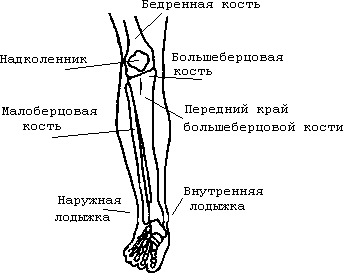 Рис. 5.10. Кости стопы, голени и коленного сустава (вид спереди).