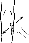 Рис. 5.24. Поперечное растяжение в суставе надколенника.